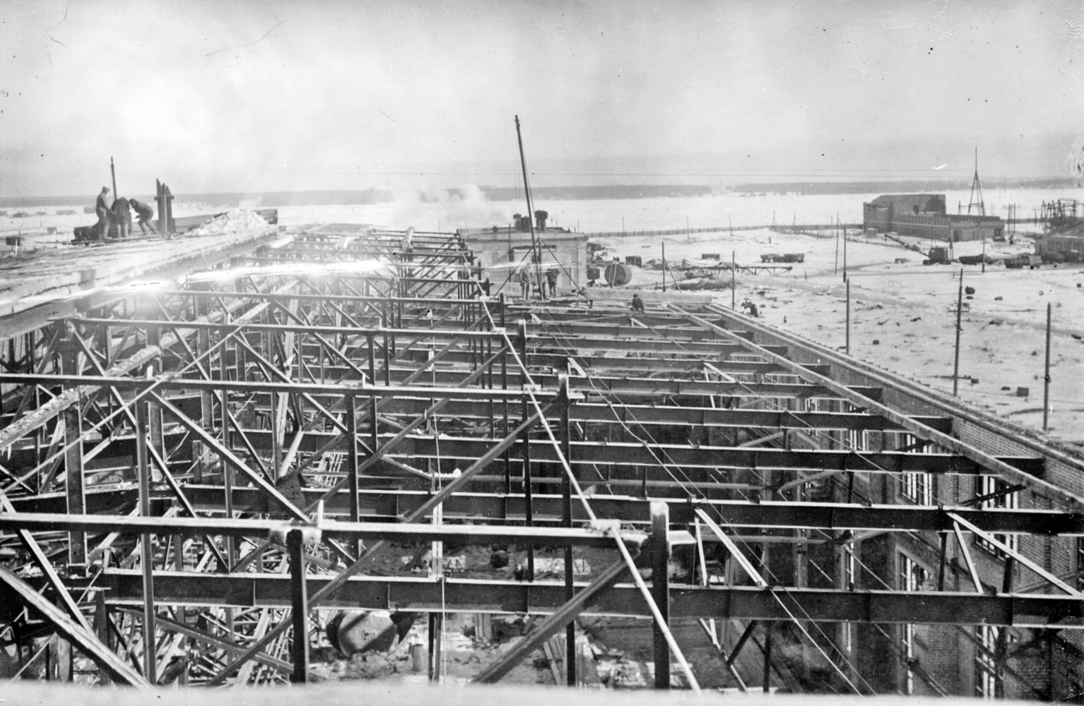 Цехи не отапливались, котельная еще не работала, поэтому там, где велись работы по монтажу оборудования или другие строительные работы, разжигали костры и жаровни, коксовки и железные печки-времянки...